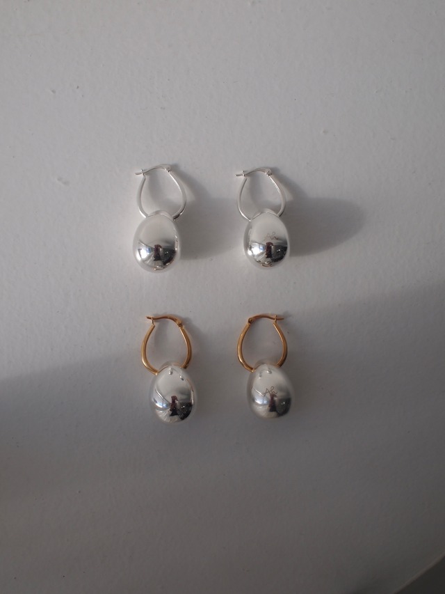 【Egg series】 Egg 2way pierce SLV/ 28000+tax YGMIX/ 32000+tax まるで〝たまご〟のようなデザインの存在感のあるフォルム。 軽やかな中空構造で仕上げたシルバー925の〝たまご〟は、肌にのせた瞬間から自然と馴染み、日常に静かな特別を添えてくれます。 〝たまご〟を外すとシンプルな 耳に沿うように寄り添うベーシックピアス。 シルバーとゴールドMIXの2色展開。 セットづかいがお勧めで、様々なシーンやスタイルにマッチしてくれます。 【Eggコードネックレス】 長さ調整可能なコードで、チョーカーからロングまで自由に。 首元にそっと落ちる〝たまご〟が、動くたびに光を反射して揺れます。 素材:silver925 K18コーティングのゴールド