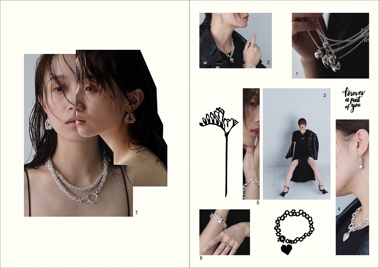 ハートやボール、Wring chainは中空構造をもちいたデザイン!ボリュームもありながら軽く、存在感のあるジュエリー。セットづかいがお勧めです。