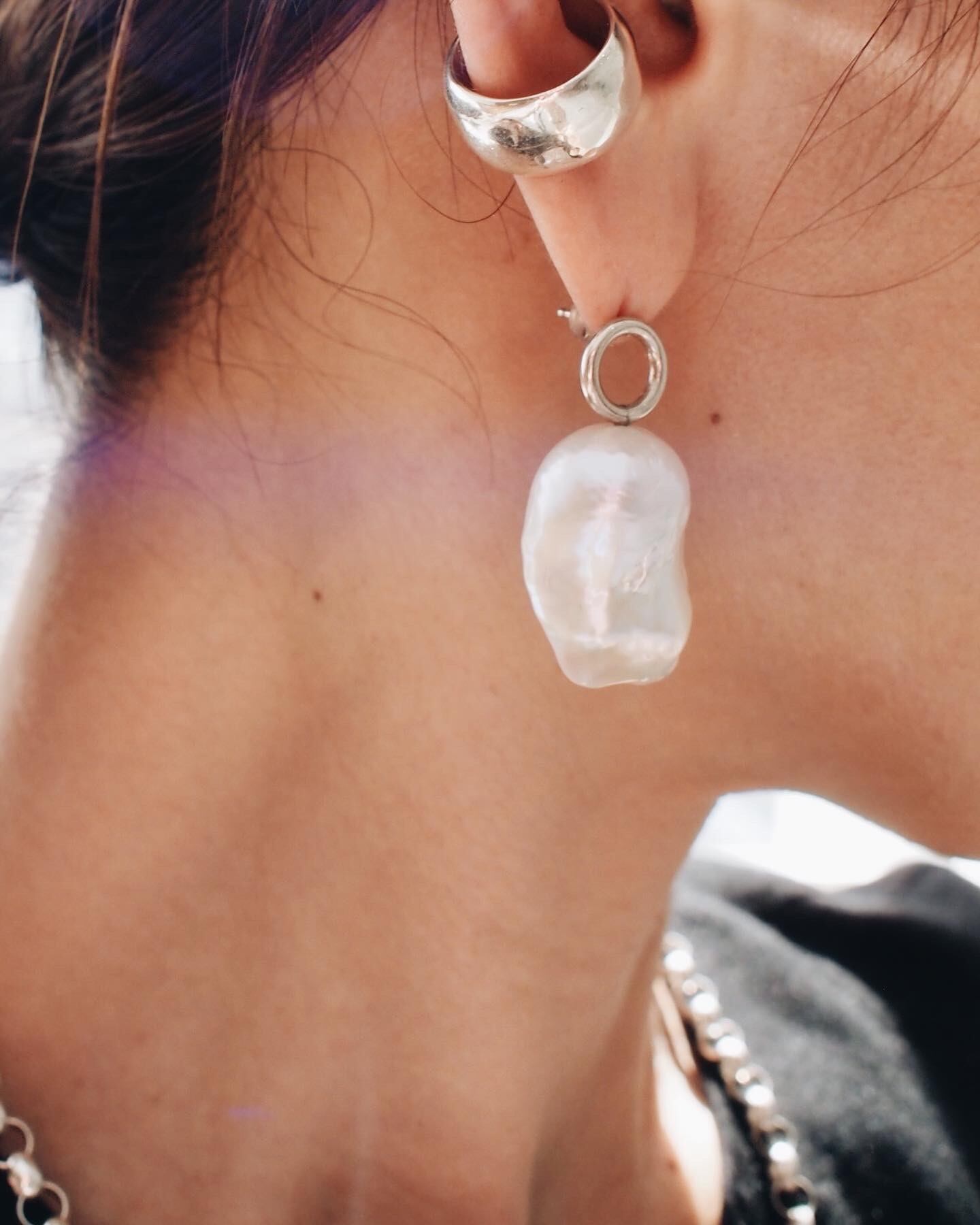ひとつひとつが異なる表情をもつバロックパールはデザイナーがバイイングし選び抜いたもの。 彫刻のようにモダンで、金魚のような愛らしい形は自然から産まれたオンリーワン。 ENにパールがついた構築的なシルエットはどんなスタイルにもマッチしていただけます。