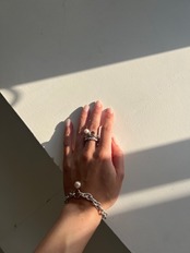 真珠を日常に、あそび心のある存在感のあるブレス。オーバルチェーンはボリュームがあり手元を華奢にみせてくれます。