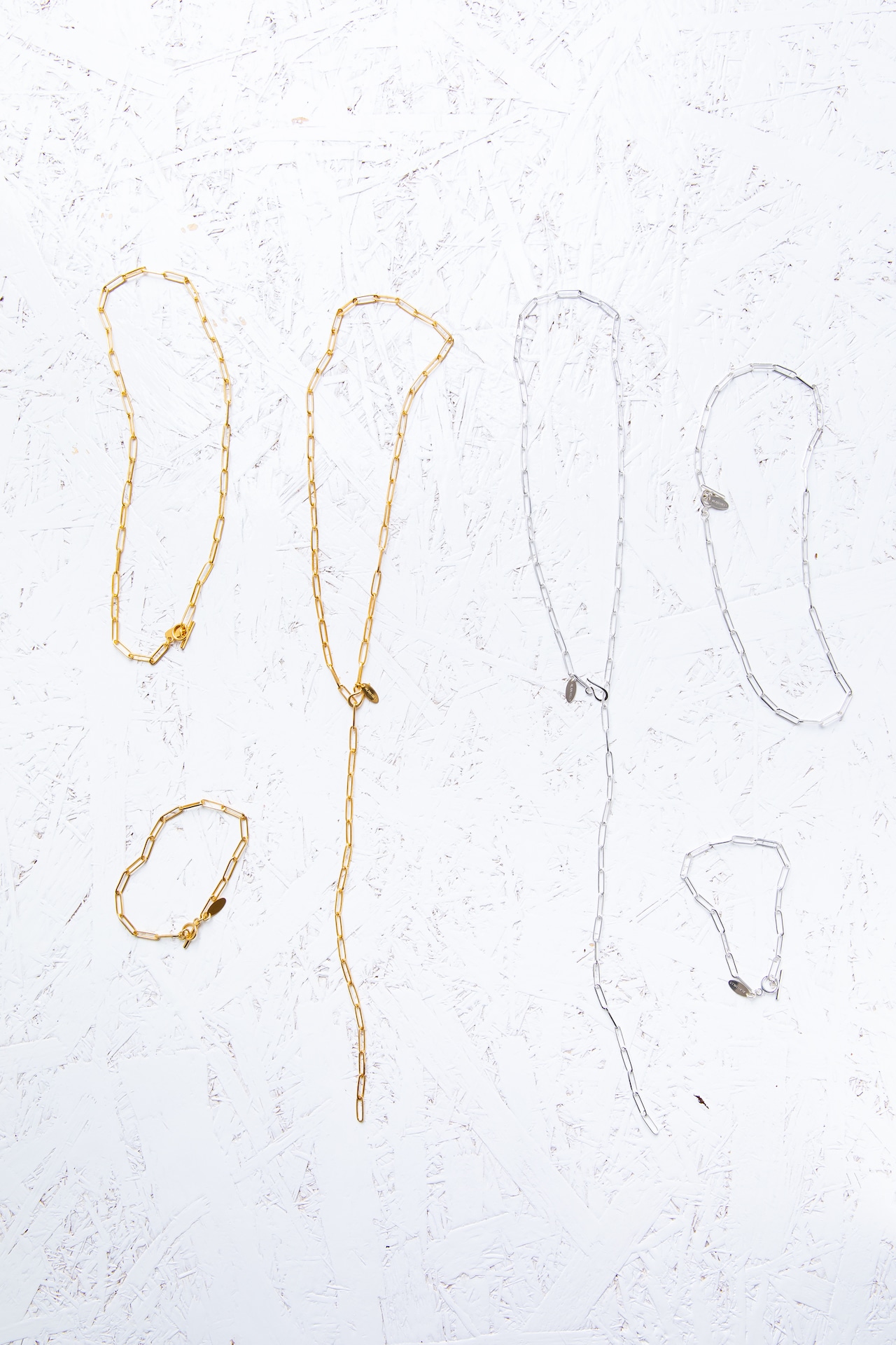 Y字にしたり、後ろにチェーンを流して短くもでき、他のチェーンやネックレスとの重ねづけもお勧めです。軽くてつけやすく、ユニセックスで人気のアイテム。