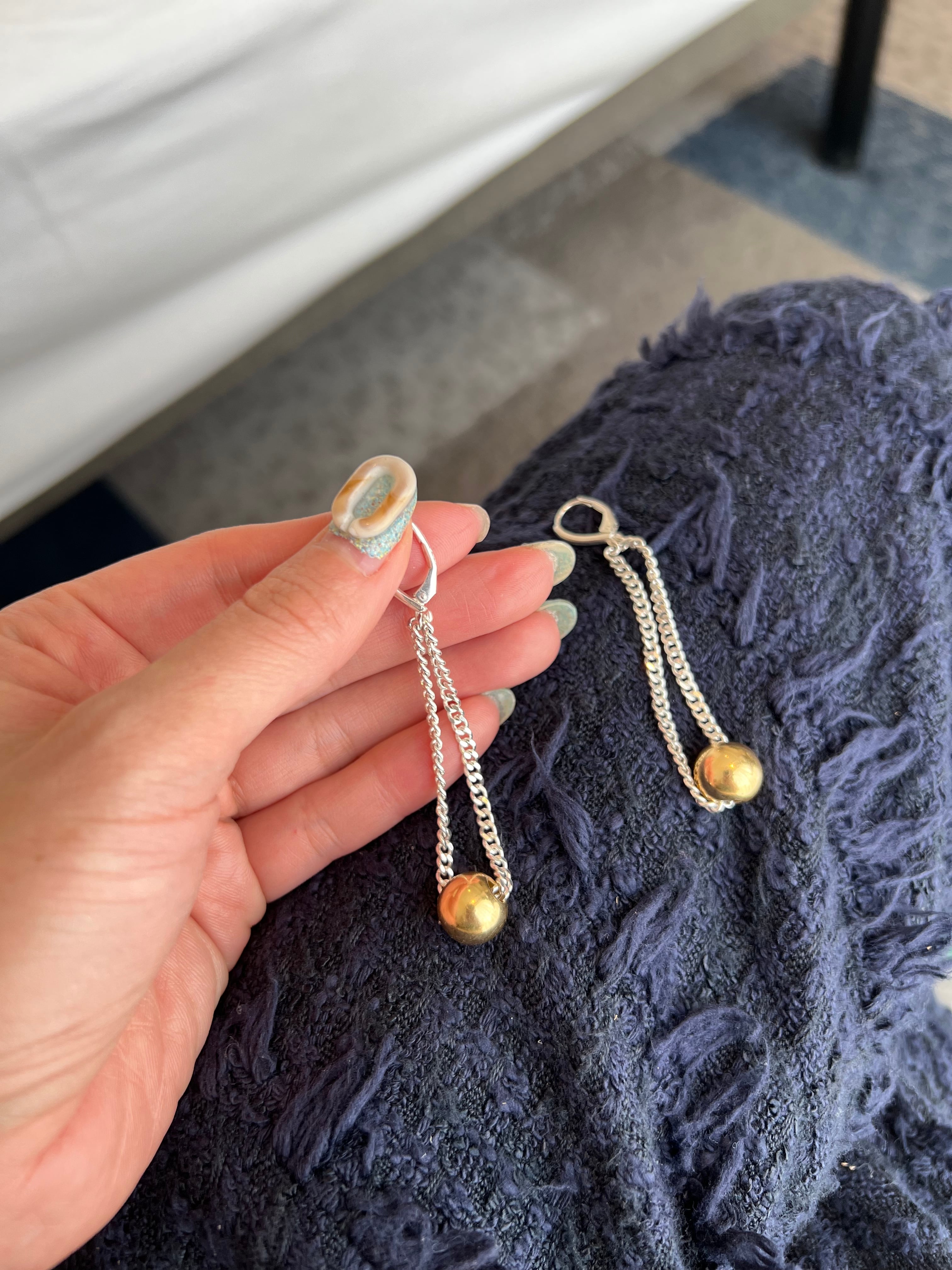 揺れるチェーンがこなれたニュアンスがでるピアス。シルバーとゴールドのMIXスタイルは、透明感と華やかさをプラスしてくれこなれ感を演出。