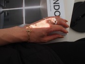 手もとを華奢にきれいにみせてくれるブレスレット。スクエアにカットされたチェーンが連なり、チェーンにはカットがはいり、綺麗めで素肌に馴染みます。