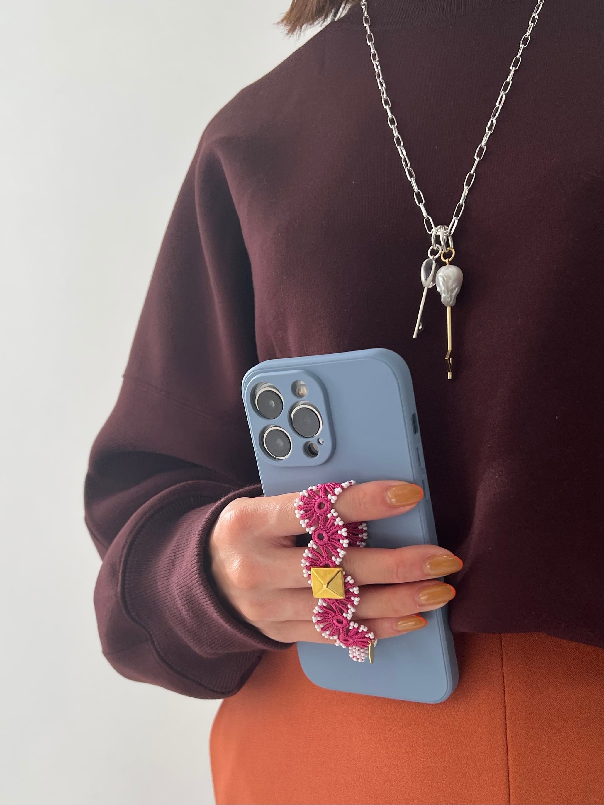 〝紡ぐ-繋ぐ〟ということを原点回帰として、沢山のひとに届けたい、繋いでいきたいという想いをこめて、大人気のトルコの職人が織るブレスを装着した