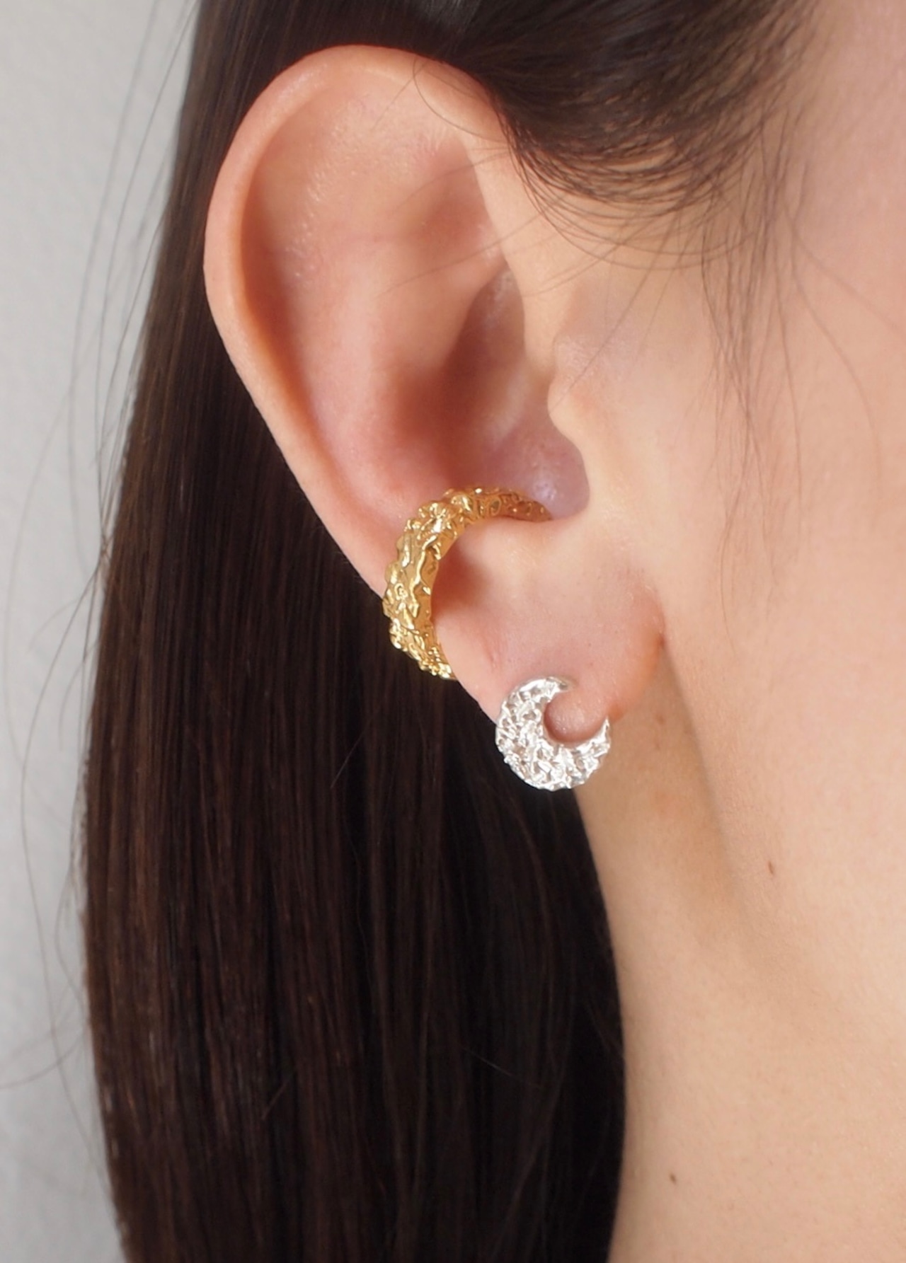 繊細で凹凸デザインが魅力の「GETSUMEN series」。天体の神秘的な輝きをイメージした、月モチーフにしたデザインがシンプルながらも存在感があるので、大人の女性にもぴったりのイヤカフリングです。