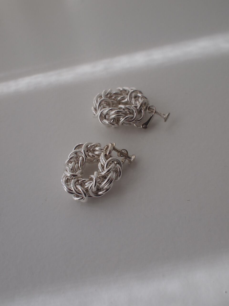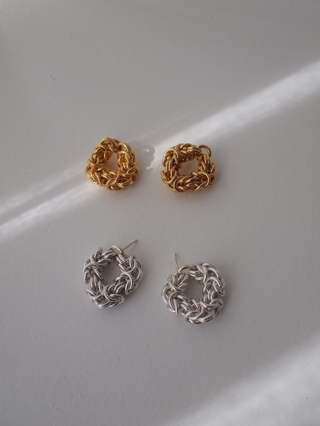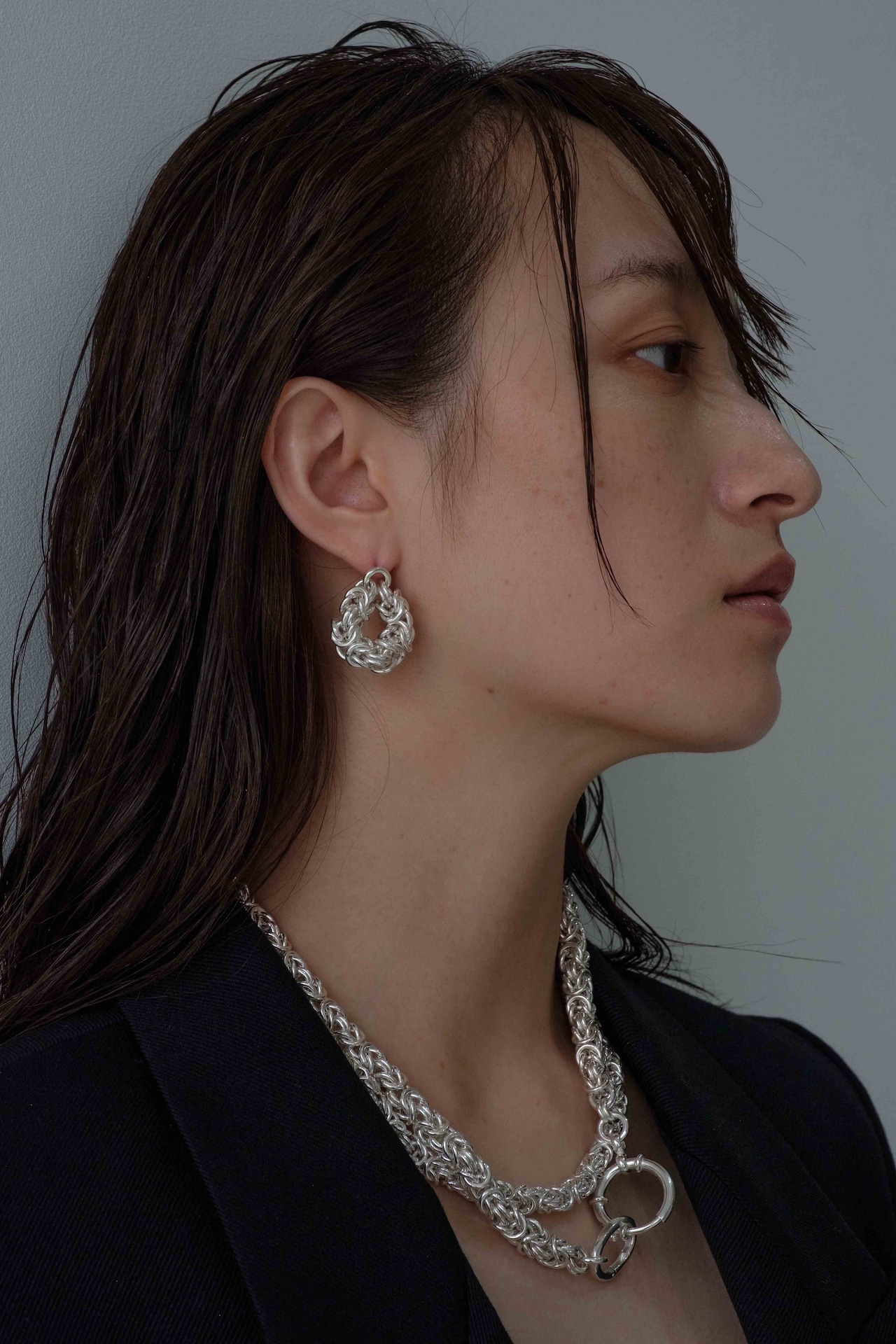 幾重にも円いエンが連なったデザインチェーンをつかった、enren series。 ボリューム感がありながらも軽やかな中空チェーンが、耳元を美しく演出します。存在感のあるデザインで大人可愛いが叶います。