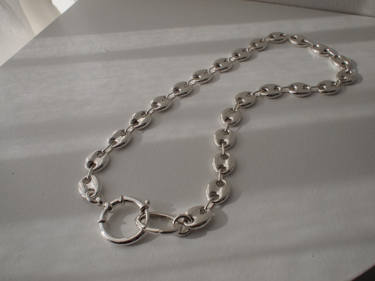 ボリューム感がありながらも軽やかな中空チェーンが存在感のあるデザインで大人可愛い、カッコいいが叶います。
